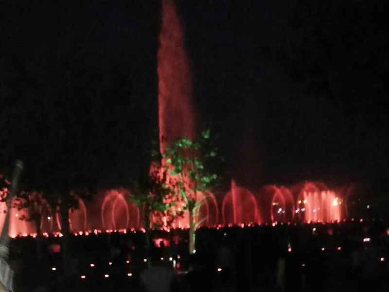 傍晚,大型音樂噴泉進(jìn)入調(diào)試表演階段,最高水柱高達(dá)百余米,形態(tài)各異、斑斕壯觀,吸引了眾多市民前來觀看。